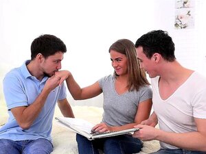 Une Petite Brune Aux Cheveux Se Fait Botter Le Cul Avec Son Petit AMI Cocu En Train De Regarder-Riley Reid