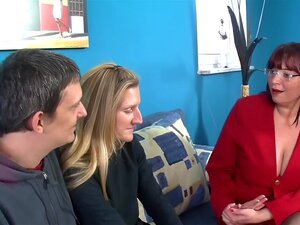 Regardez la cougar britannique blonde Anna Joy se déshabiller et taquiner au bureau, révélant ses seins fermes et son cul rond. Voyez-la devenir excitée et se doigter jusquà lorgasme. La milf au foyer Judy approuve.