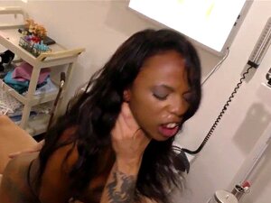 Une ébène s'arc-boute en infirmière bang. Une mignonne ébène s'accouple en infirmière bang et suce une énorme bite en HD